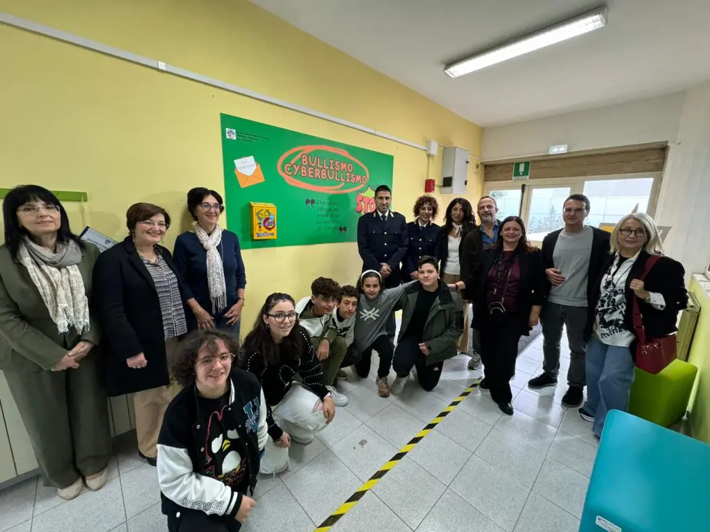 La “Bully Stop please! box” inaugurata nella mattinata alla presenza della Polizia Postale, della dirigente scolastica dott.ssa Giuseppina Broccio, della DSGA dott.ssa Mariapia Ilacqua, dell’artista Simone Caliò che l’ha realizzata e donata all’Istituto e di una rappresentanza di alunni e docenti è una cassetta postale posta al centro di un’area dedicata al primo piano del plesso scolastico in cui gli alunni possono scrivere e imbucare lettere di segnalazione anche anonime di episodi di bullismo di cui possono essere vittime o testimoni.